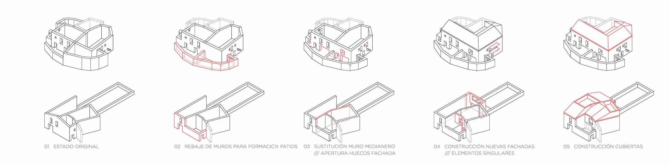 ¿Cómo mantener la esencia de estas veteranas construcciones y al mismo tiempo construir respondiendo a los cánones de vivienda contemporánea? ¿Cómo reinterpretar las necesidades de la casa rural gallega aprovechando unas ruinas predominantemente agrarias?